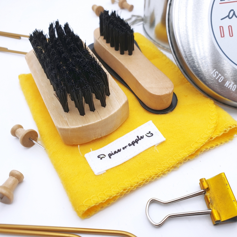 Caixa com: graxa, paninho, calçadeira e 2 escovas.
