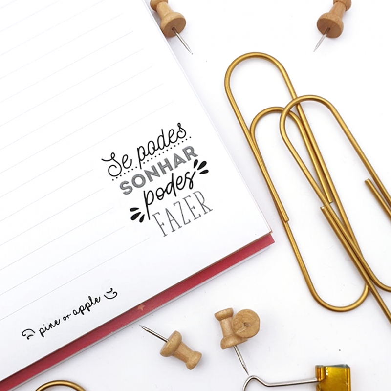 Caderno Unicórnio com impressão a dourado para que nunca te esqueças de nada importante. Incluí uma caneta rose gold gravada a laser.