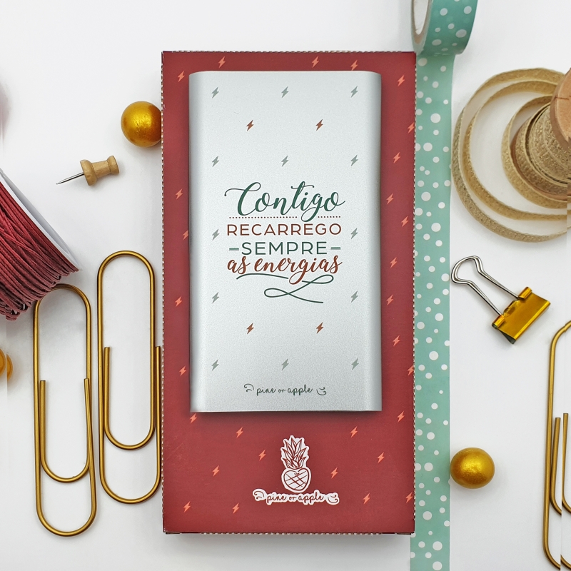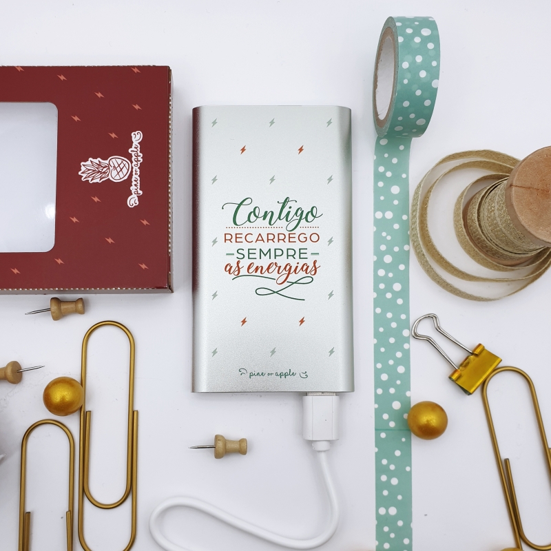 Power-bank com frase romântica para oferecer àquela pessoa especial. Celebrem juntos o Amor de forma energética.