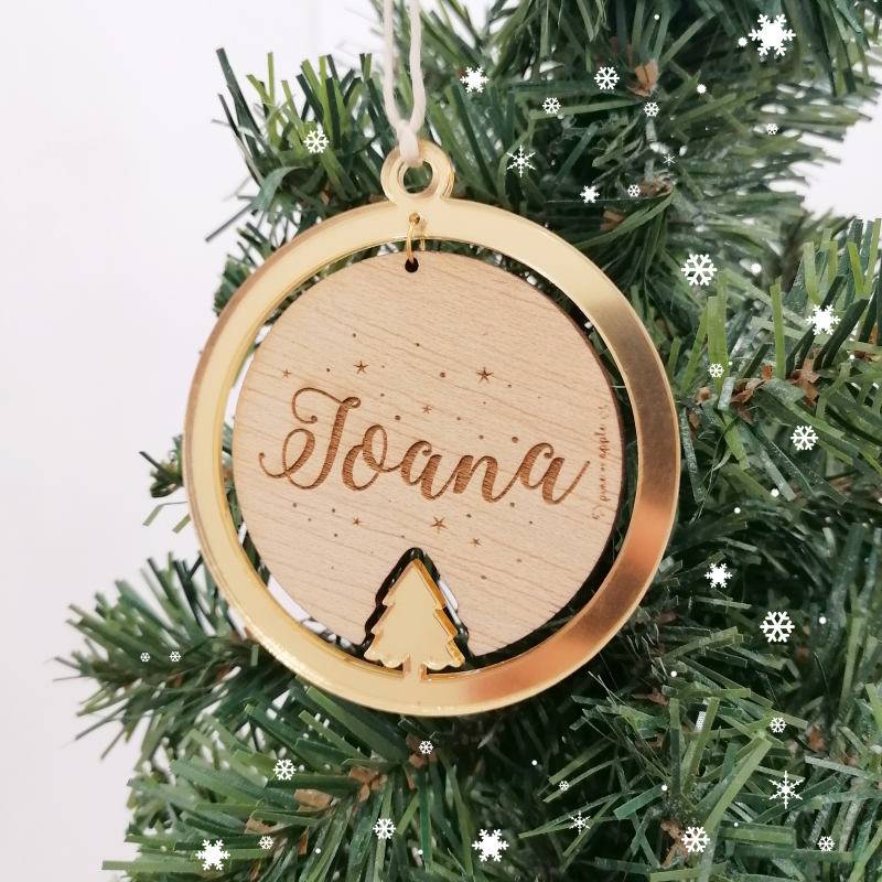 Bola de Natal em madeira personalizada com nome para colocares na tua árvore de natal! Indica por favor no final da página o nome que pretendes colocar.