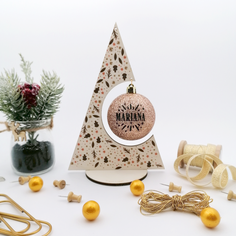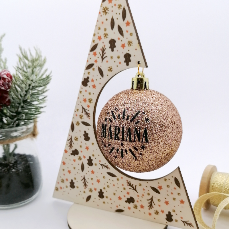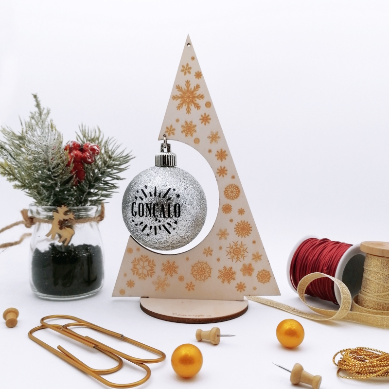 Decoração de Natal em madeira com gravação a laser e impressão UV.