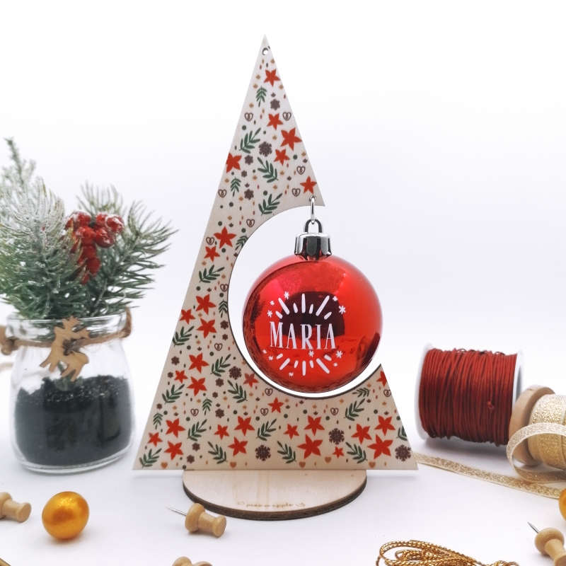 Aqui está a nossa mini árvore de Natal em madeira pintada com os padrões mais especiais desta época. Cada mini árvore trás uma bola personalizada.
